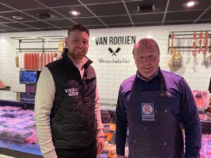 Erik en Evert zijn de tweede generatie Van Rooijen in de gelijknamige Keurslagerij. De broers rolden al op jonge leeftijd in het familiebedrijf. “Mijn ouders zijn er al twintig jaar uit, maar ze komen nog bijna dagelijks een kopje koffie doen”, vertelt Evert, die in 2003 de slagerij samen met zijn vrouw Marianne overnam. Later volgde Erik. “We zijn allebei na de middelbare school naar de SVO gegaan en hebben daar het vak geleerd. In de tijd van mijn ouders (die in 1969 begonnen) was het nog een zelfslachtende slager, met eigen vee en uitbeenderij. We zijn nog steeds een ambachtelijk bedrijf, inclusief worstmakerij, maar we slachten niet zelf meer. Zo’n 85 procent van de producten die we verkopen, is afkomstig uit de eigen productie. Door de jaren heen zijn we onze productie steeds verder gaan automatiseren. Hetzelfde geldt voor het verpakkingsproces.”